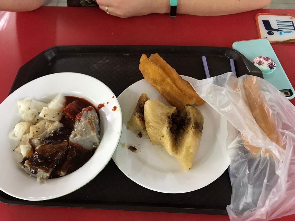 The next day we found ourselves in Chinatown for breakfast. Even though I live in Hong Kong, I was very excited by the options at the Chinatown Complex Food Centre. We got zhong-zi, or glutinous rice with pork wrapped in bamboo leaves; rice and yam cakes in oyster and chili sauce; fried dough sticks; and melon milkshakes. We then stumbled upon a Michelin-star soup dumpling stall, which officially opens at 11:30 AM, but we were able to put in an order at 11:20 AM and beat the long line of people.