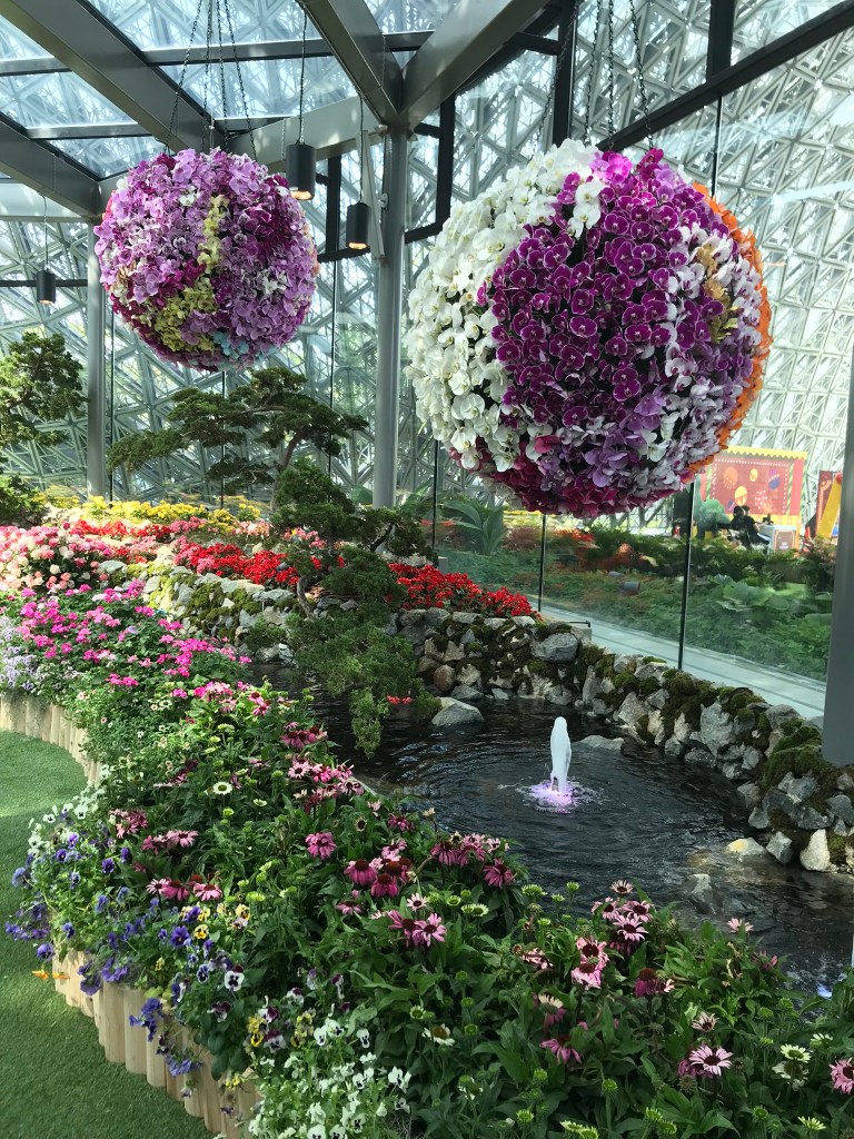 We then went to Gardens by the Bay, which is a very different place during the day. For access to the Flower Dome, the Cloud Dome, the Floral Fantasy, and a round trip shuttle ride, it cost about $35 SGD. This is definitely one of the must-see sights in Singapore. Each dome/conservatory was different from the next, and all were awe-inspiring. There’s really nothing else in the world that compares to the Gardens by the Bay.