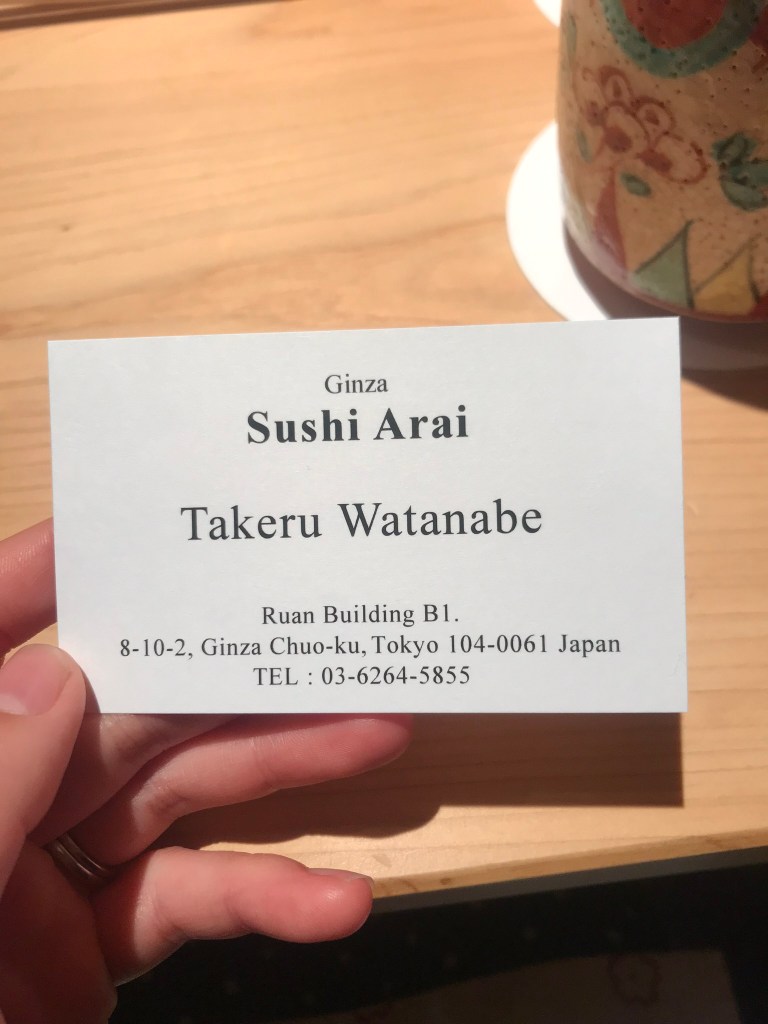 Happy Monday everyone! Today I’m writing about our recent experience at Sushi Arai 鮨あらい, a one-Michelin star sushi restaurant in Tokyo, Japan. Overall, it was an amazing experience, complete with incredibly fresh food and impeccable service. Below I will give a brief description of the restaurant and then go into the food pictures which, let’s face it, is the real reason why you are reading this post.