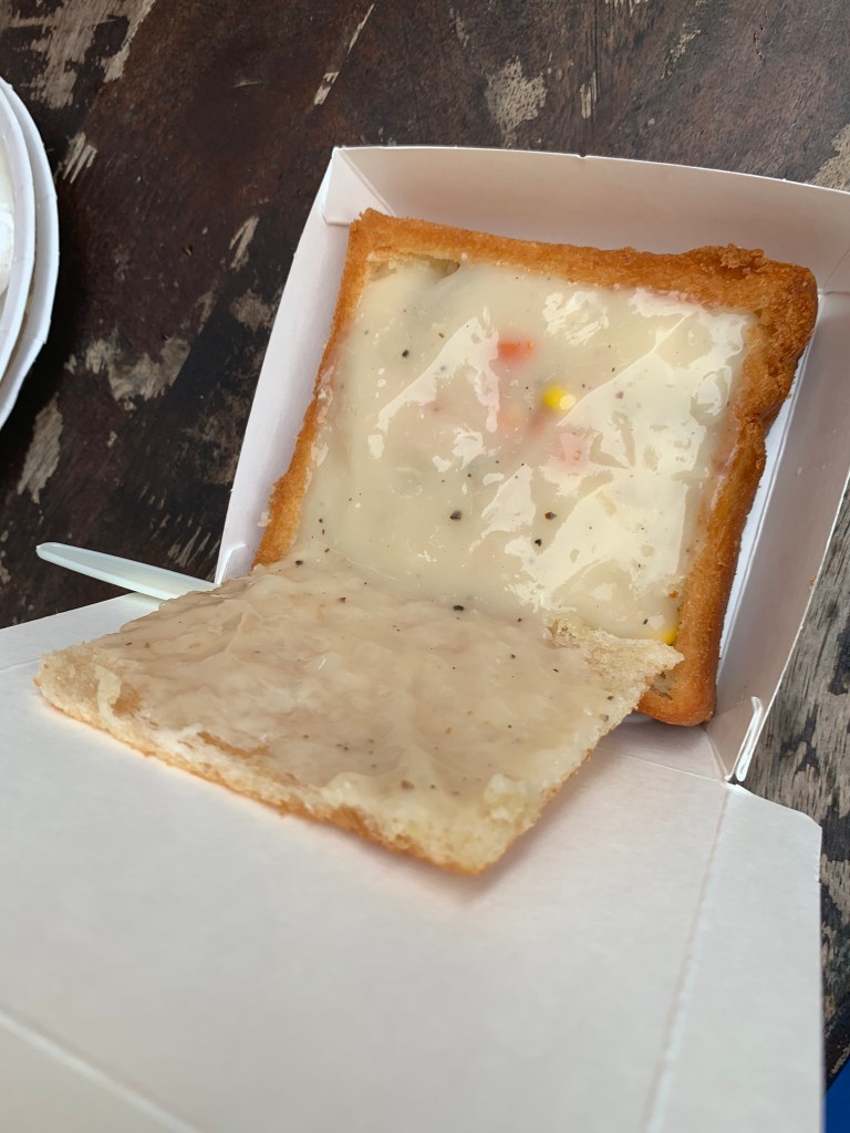 - Coffin bread (kind of like a pot pie but with a fried white bread crust)
